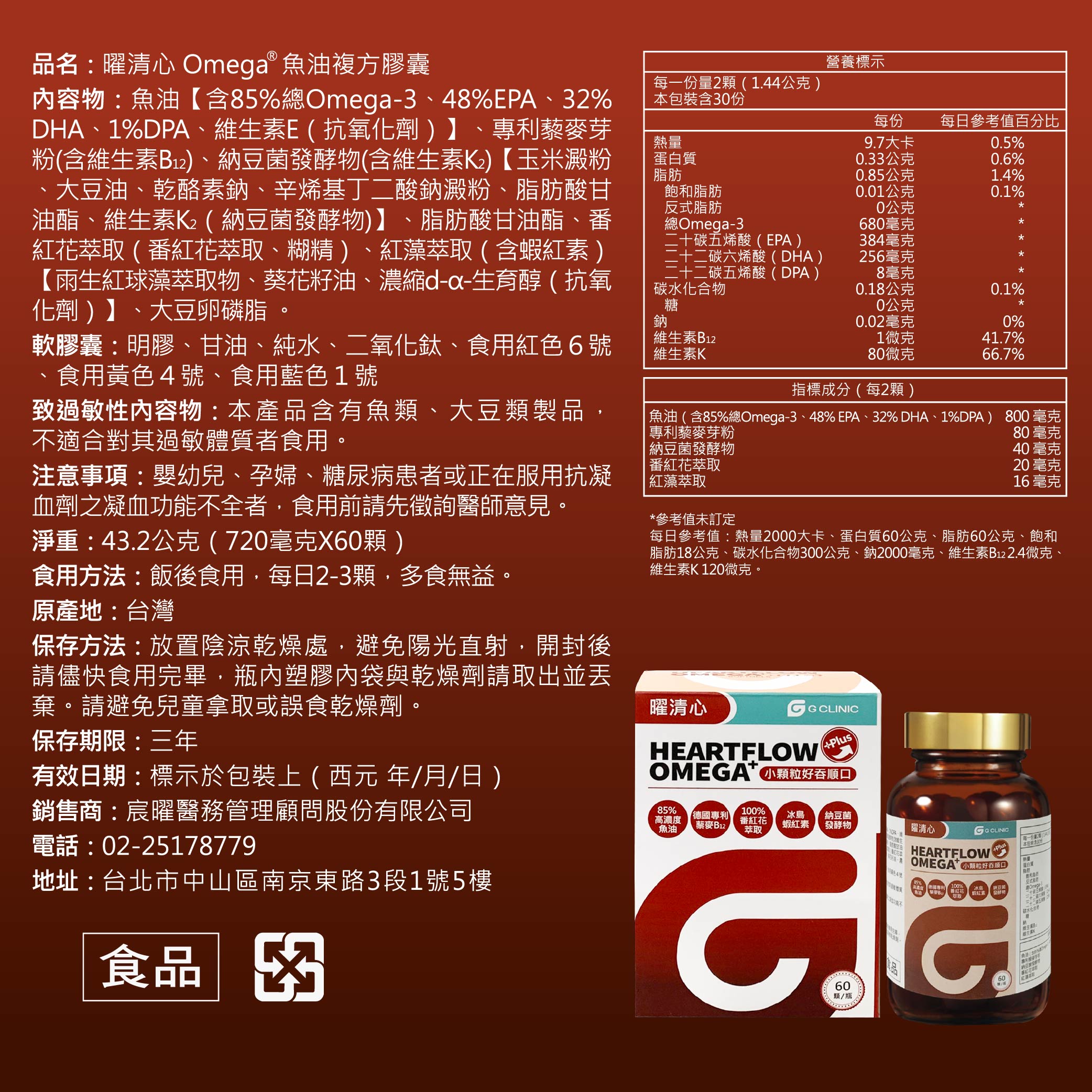 Allergenic Contents: This product contains fish and soy products, and is not suitable for individuals allergic to them.
