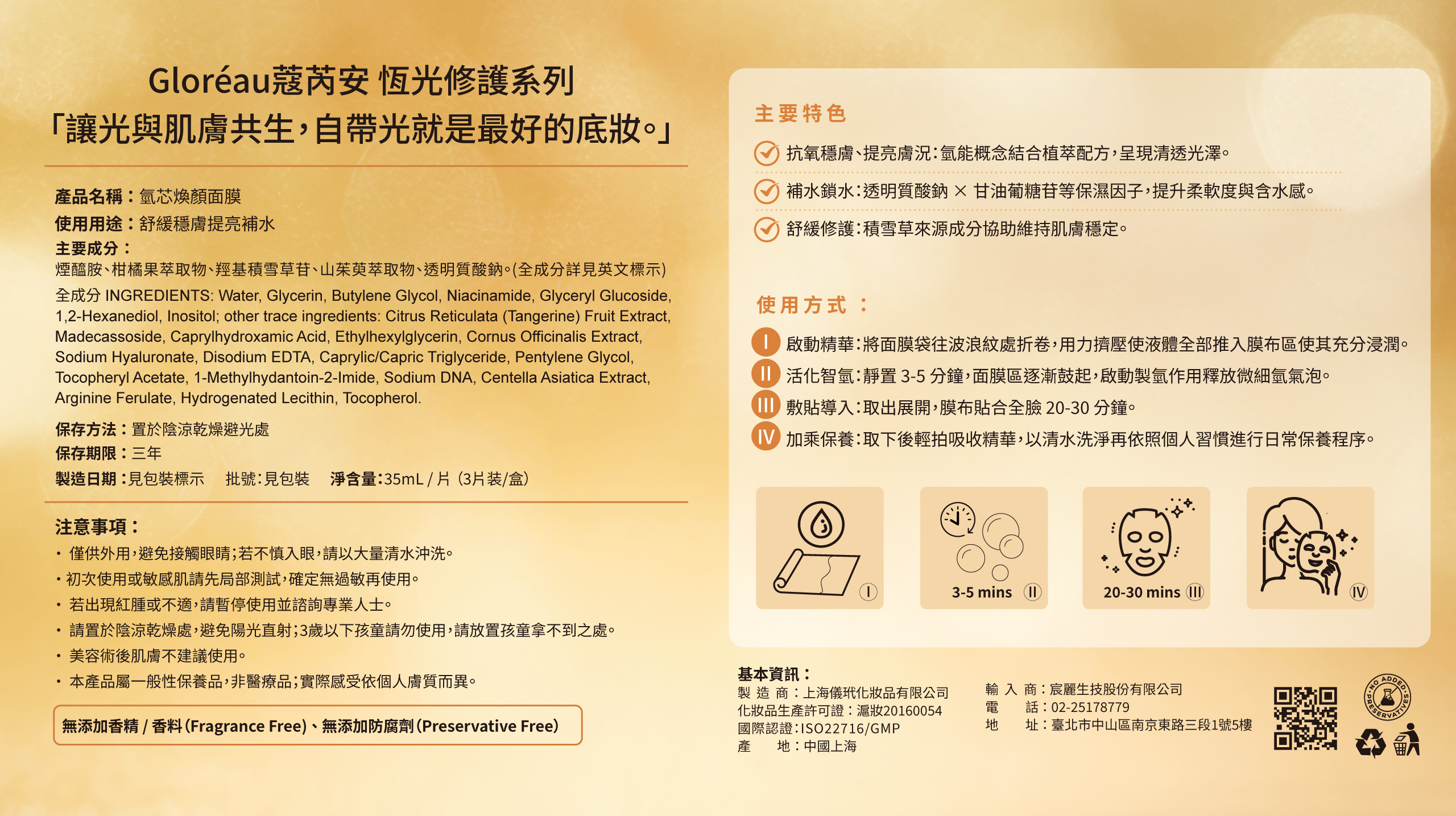 - 加乘保養:取下後輕拍吸收精華,以清水洗淨再依照個人習慣進行日常保養程序。